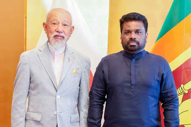 ජපාන රජයේ ආරාධනයකට අනුව ජපානයේ නිල සංචාරයක නිරත ජනාධිපති අනුර කුමාර දිසානායක මහතා අද (30) පෙරවරුවේ ටෝකියෝ හි ඉම්පීරියල් හෝටලයේදී නිපොන් පදනමේ ආරම්භක සභාපති යොහෙයි සසකාවා මහතා හමුවී සාකච්ඡාවක නිරත විය.