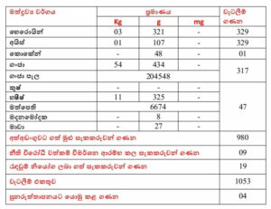 ඒ අනුව අත්අඩංගුවට ගනු ලැබූ සැකකරුවන් සහ මත්ද්රව්ය ප්රමාණ මෙසේය.