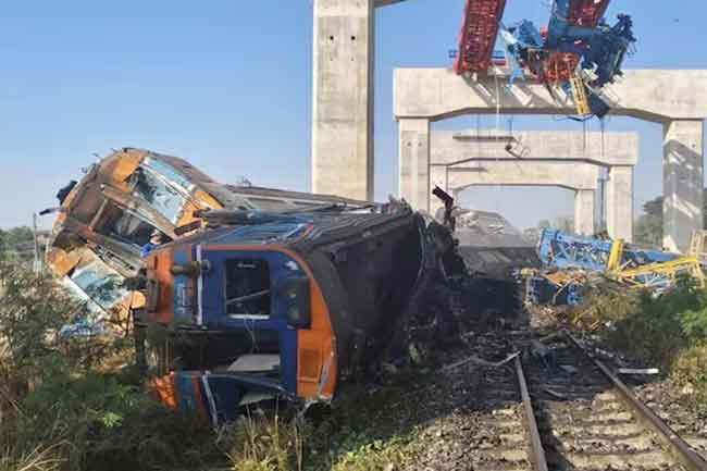 තායිලන්තයේ දුම්රියක් මතට දොඹකරයක් කඩාවැටීමෙන් දුම්රිය පීලි පැන පුද්ගලයින් 22ක් ඡීවිතක්ෂයට පත්ව 30කට වැඩි පිරිසකට තුවාල සිදු වී තිබේ.