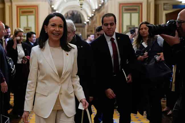 හමුවෙන් අනතුරුව පිටතට පැමිණ මාධ්යවෙදීන් අමතමින් ඇය පවසා ඇත්තේ වෙනිසියුලානු ජනතාවගේ නිදහස සඳහා ඔහුගේ කැපවීම අගය කිරීමක් ලෙස සිය සාම ත්යාගය අමෙරිකානු ජනාධිපතිවරයා වෙත පිරිනැමූ බවය.