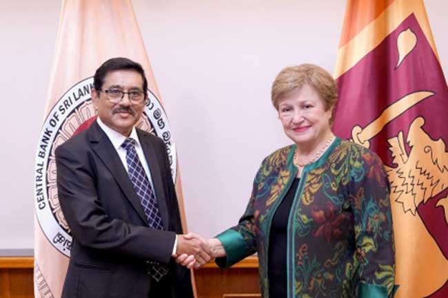 ජාත්යන්තර මූල්ය අරමුදලේ කළමනාකාර අධ්යක්ෂ ක්රිස්ටලිනා ජෝර්ජිවා මහත්මිය සහ මහ බැංකු අධිපති ආචාර්ය නන්ද ලාල් වීරසිංහ මහතා අතර හමුවක් සිදුව තිබේ.